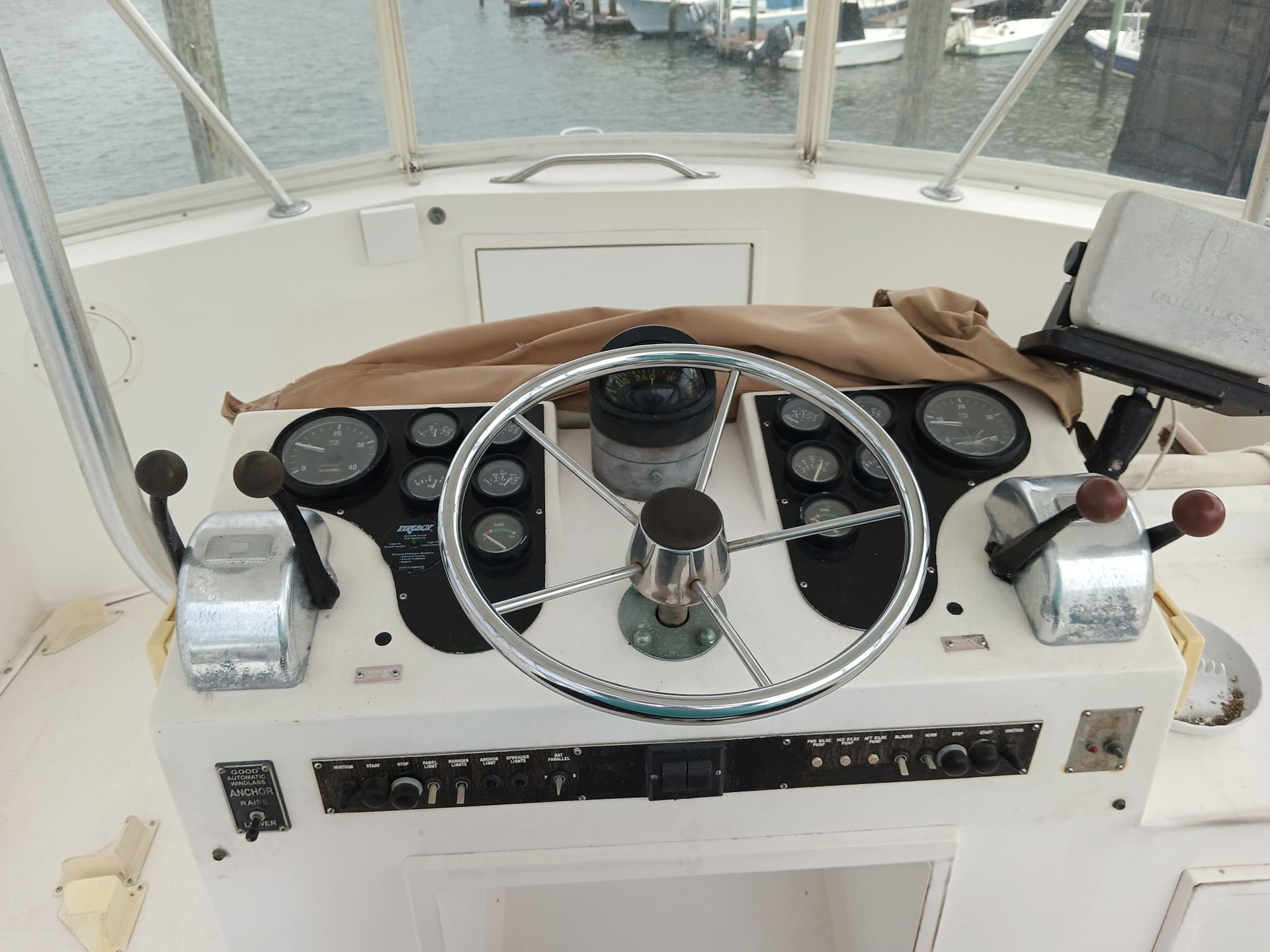 400gal fuel capacity. Two staterooms. Electric head with holding tank. Galley up with oven two burner top with microwave. Two a/c heat pump units. Cockpit with fish box. Salt water wash down. 60gal fresh water tank. Rupp outriggers. 6 person life raft. Anchor Puller with 600' of rode. Full Electronics. 8KG Generator. 2024 Survey Available.